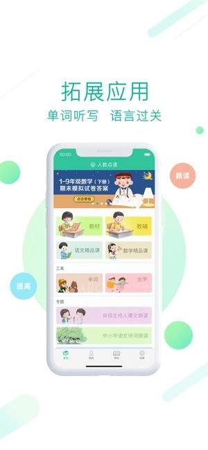 2、免费使用,与校园的教材课本同步更新,汇集每一个章节所需要学习的内容。1、1—9年级所需要学习的教材课本这里均有,根据你的学习进度,进行选择;