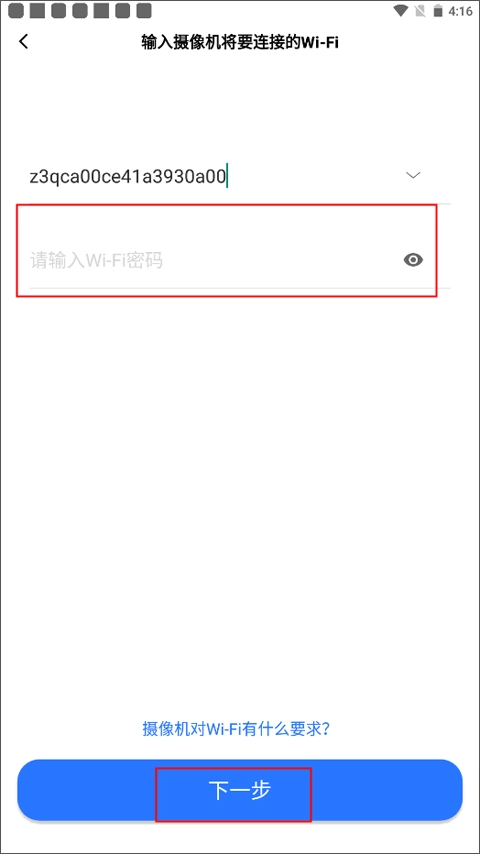 (3)输入摄像机连接的Wi-Fi密码。