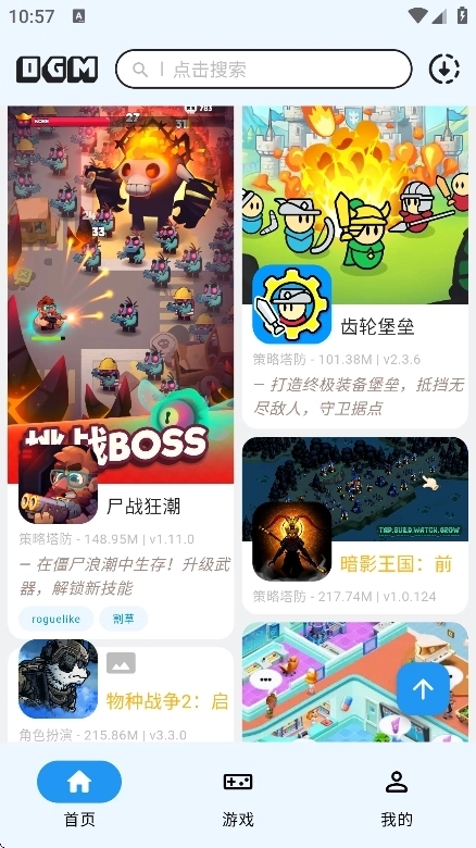 游戏下载与管理:支持关键词搜索快速定位游戏,提供直接下载和网页下载两种方式,采用先进下载技术,支持后台下载与断点续传,确保下载速度快且稳定;可在“我的下载”中管理下载进度和已下载游戏。