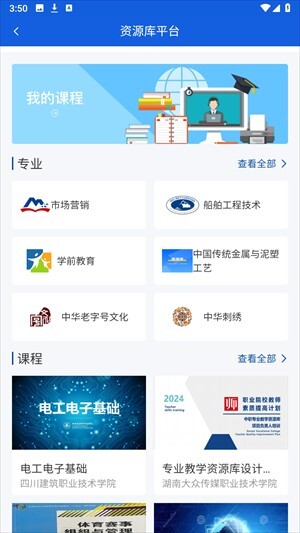 3、点击进入专业资源库,里面会提供不同专业的资源。