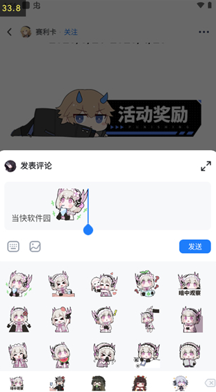 4、用户能够在社区里开展创作交流,分享游戏体验、玩法心得和其他动态内容。例如创作同人插画、漫画或者同人文来分享,发布帖子的形式十分灵活,既可以是图文结合,也可以是纯文字,甚至还能使用表情包(平台已准备了丰富的表情包素材,可直接选用)。