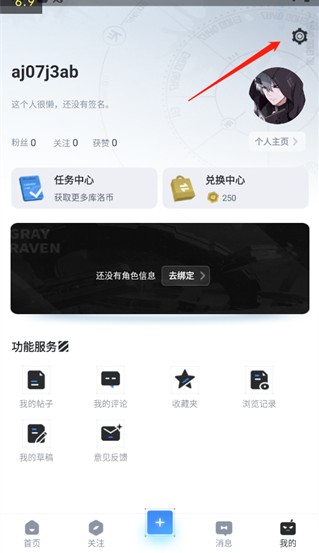 1、库街区app官方版后,在首页点击底部的我的,可以进入个人页面,登录后成为社区一员。