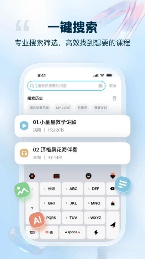 全乐器覆盖:涵盖钢琴、吉他、尤克里里、小提琴等西洋乐器,以及古筝、二胡、笛子等民族乐器,满足多样需求;