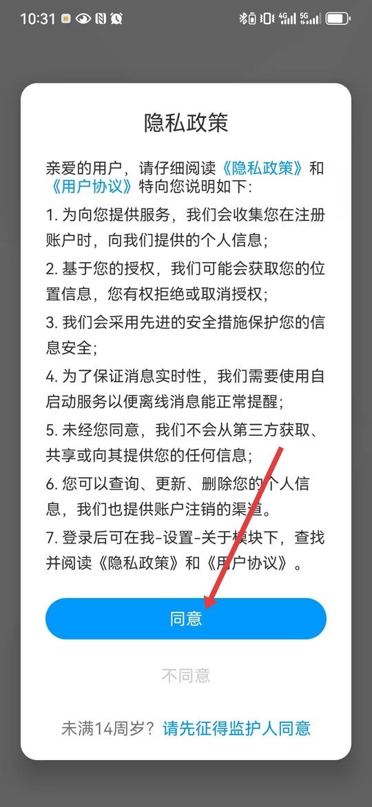 1、打开超星移动图书馆后会弹出隐私政策弹窗,需仔细阅读政策内容,若认可平台对个人信息的处理规则,点击同意按钮,完成此步骤后即可进入注册或登录流程。