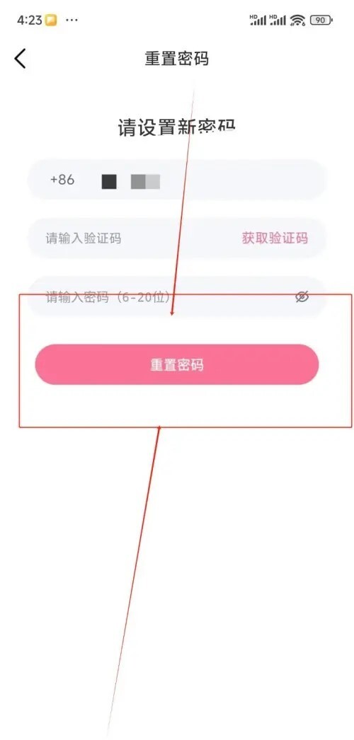 5.进入到重置界面中输入验证码和密码后点击重置密码即可