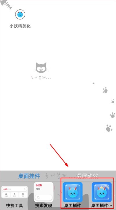 4、接着回到手机桌面,长按桌面直到弹出插件选项,找到小妖精美化插件。