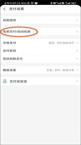 2、进入支付设置后,找到“免密支付/自动扣款”选项并点击。