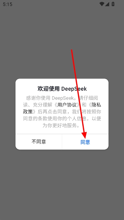 2、打开进入软件,点击同意相关的隐私协议