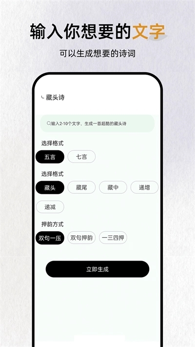 打开App,在输入框中用中文(或英文)描述你想表达的意思。可以是短语、句子甚至几个关键词。例如:输入“形容景色很美”、“说话很啰嗦的人”或者“表示非常重要”。