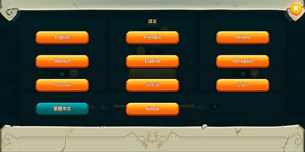 2、接着在语言列表中选择左下角的【繁体中文】选项,就能将饥饿龙切换至中文模式。