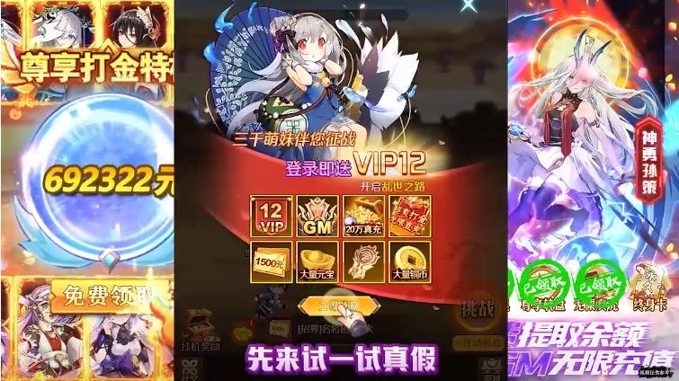 ★上线赠送vip12,超多奖励一键领取,海量资源领到手软!