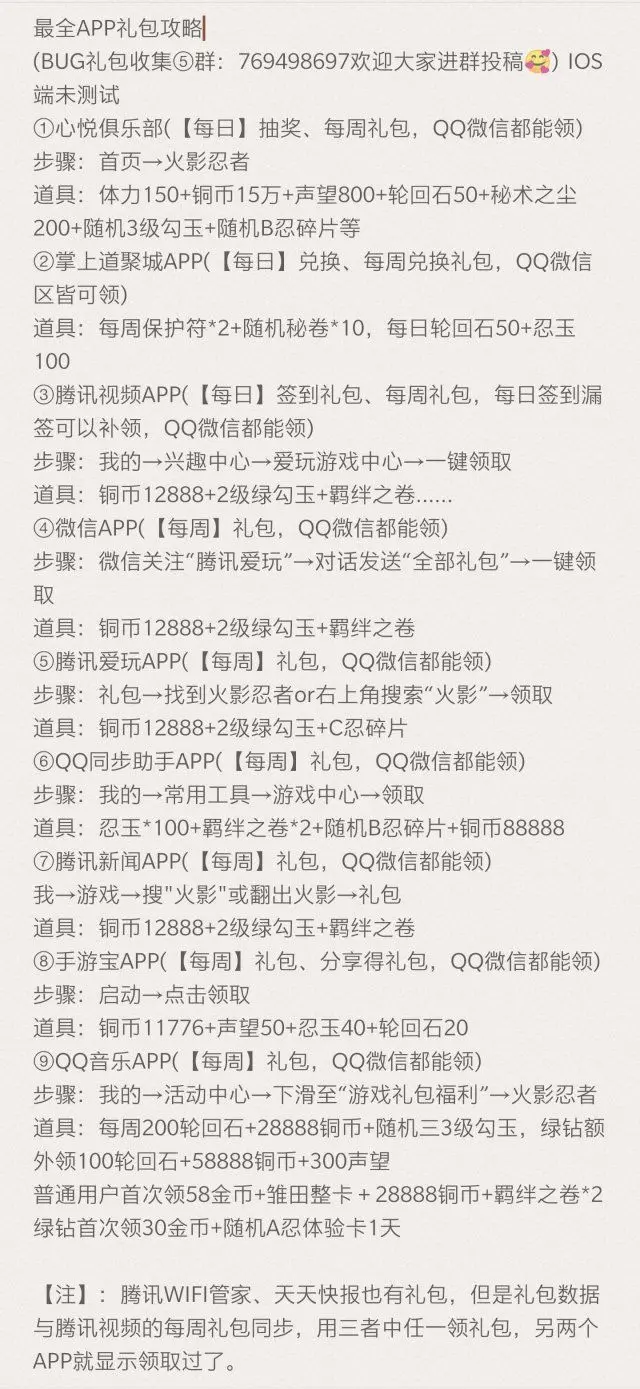 在QQ动态——游戏——火影忍者礼包