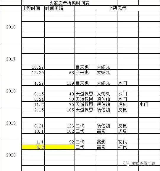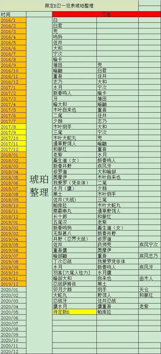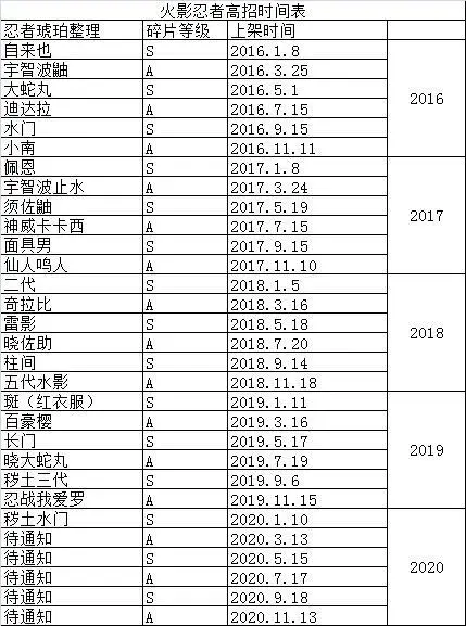 5、高招忍者时间表(每出一位都会更新)