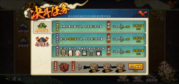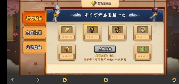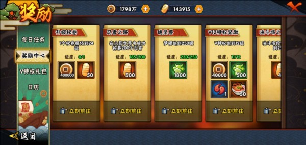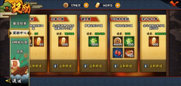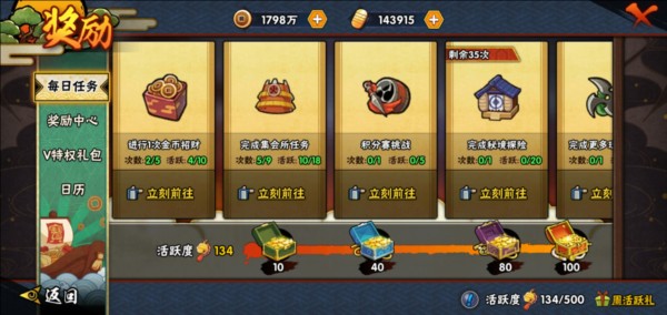 升级密卷以及忍者招募达成数目,可以领取一定量金币(数目也是递增最大500金币)