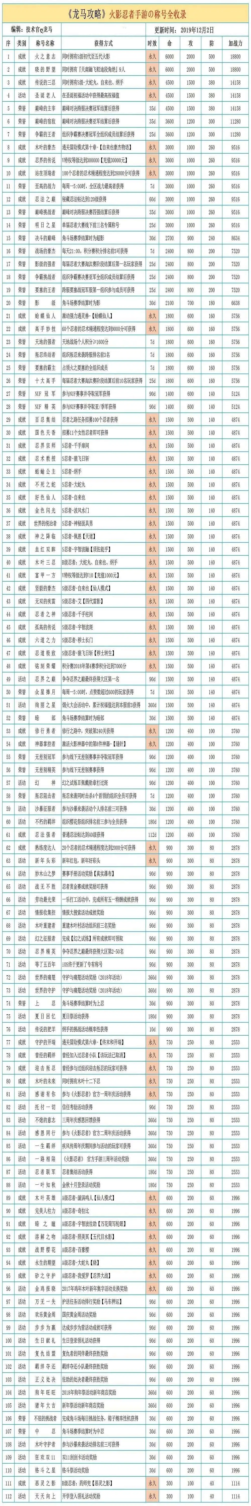 6、限定忍者一览表,每隔一段时间就会返场之前出过的限定勾玉战力加成