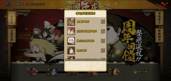 中忍考试启临 章 奖励:8w铜币;8w铜币+2普招券;100金币+100体力
