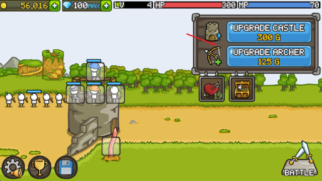 2、点击“battle”,战斗随即开启,我方英雄与身后的士兵会自动对出现的怪物展开攻击。