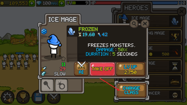 1. 在主界面挑选英雄,待英雄升至11级后,点击右下角的“change class”。