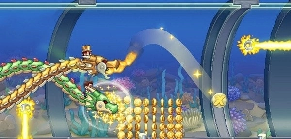 疯狂喷气机正版是一款融合跑酷与射击元素的游戏。在游戏中,玩家将化身冒险家潜入邪恶的科学研究所,借助喷气机的灵活操控轻松击败敌人。通过虚拟按钮,玩家可以控制角色的飞行射击方向与速度,松开按钮即可让角色下降;飞行过程中,还能发射子弹、泡泡弹和彩虹弹等多种弹药。游戏画面制作得十分精美,感兴趣的玩家不妨来体验一番《疯狂喷气机》的乐趣!