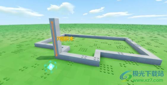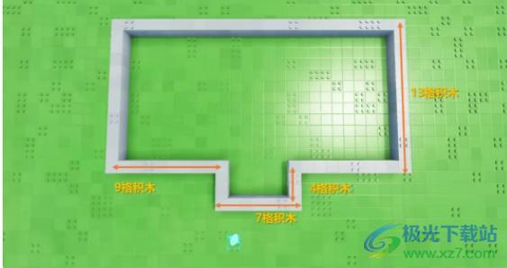 1、首先我们先用【石块】把房屋大致的占地轮廓勾勒出来,要是想把屋顶搭成斜边,一定要把这条边的长度设成奇数,这样才好让斜边对齐。