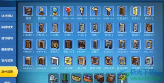 9、在素材库的【室外装饰】界面,选择好希望使用的门、窗,将其放置在房屋的对应位置;