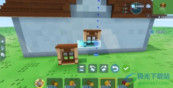 7、搭建屋顶外沿时,可选用【斜面模块】或【台阶模块】,需确保屋顶向外延伸一格,如此既美观,也便于后续用模块枪复制操作。