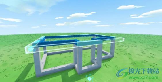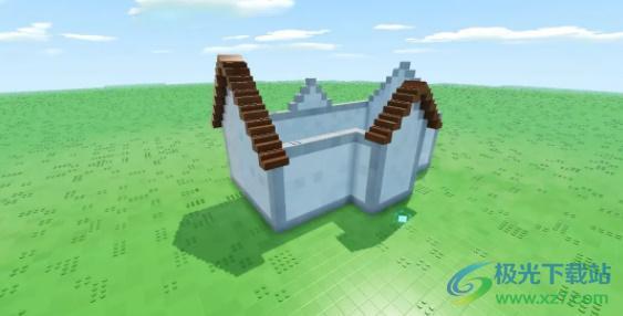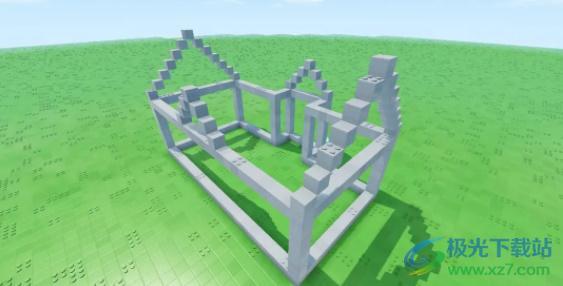 6、房屋框架已大致搭建完成,接下来可以用其他颜色的积木来填充墙壁,不用顾虑门和窗的位置,后续我们可以通过挖空的方式放置,或者直接用模块枪把预先准备好的门窗安装进去;