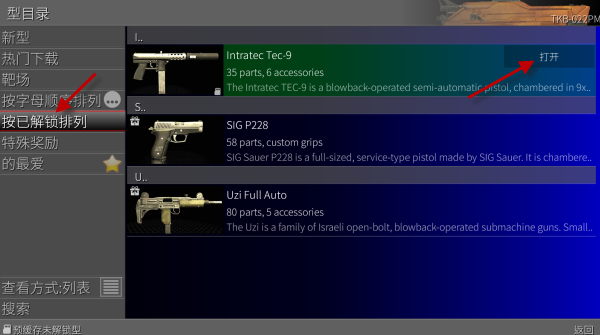 2、点开之后选择已解锁的枪械,点击任意一把打开。