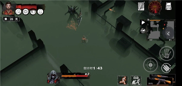 让玩家探索地图的不同区域,找寻食物以及饮用水也要找到药品,在游戏的右上角是由地图引导的,随时都能关注当前的位置。
