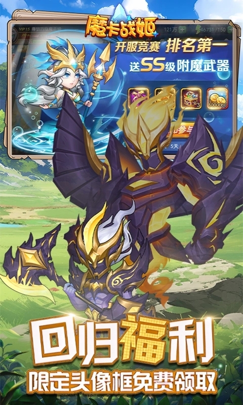 原价648元的“至尊卡”仅6.48元,每日领取魂玉和召唤券;首充6元送SSR战姬“影”。所有内购项目均以0.1折出售,月卡党也能轻松全图鉴。