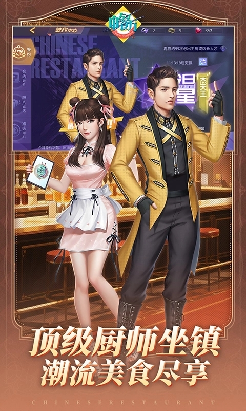 新增明星角色:邀请最新季综艺嘉宾加入,每位带来新技能与剧情。"明星羁绊":特定明星组合同时雇佣激活特殊加成,如"明颖CP"同时出场提升全店效率20%。"明星养成":投资明星培训,解锁明星专属菜品与限定剧情。