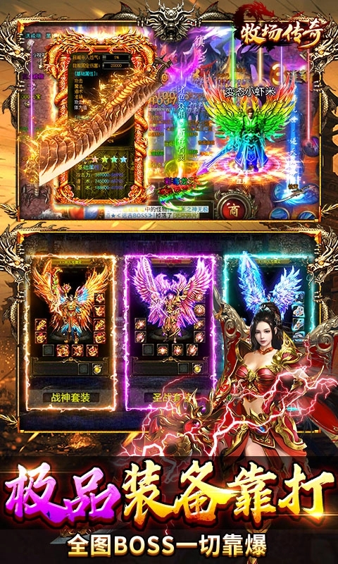 全服自带“高爆BUFF”,基础爆率是普通传奇版本的10倍。小怪掉终极不再是梦,BOSS更是必出1-3件神话装备。