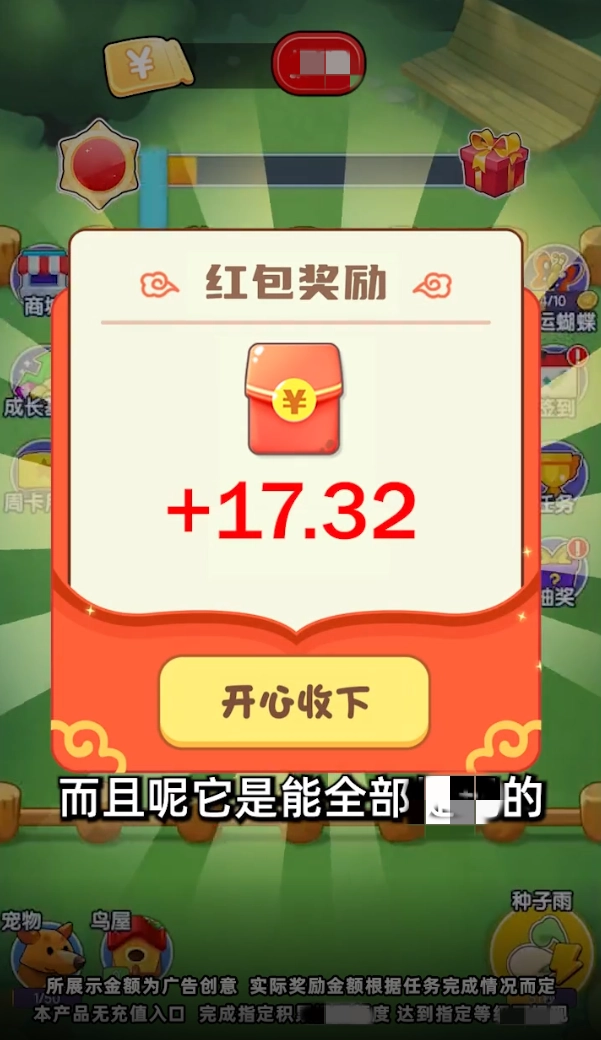 3、动物喂养成熟后,可获得现金红包和产物奖励(鸡蛋/猪肉/牛肉);